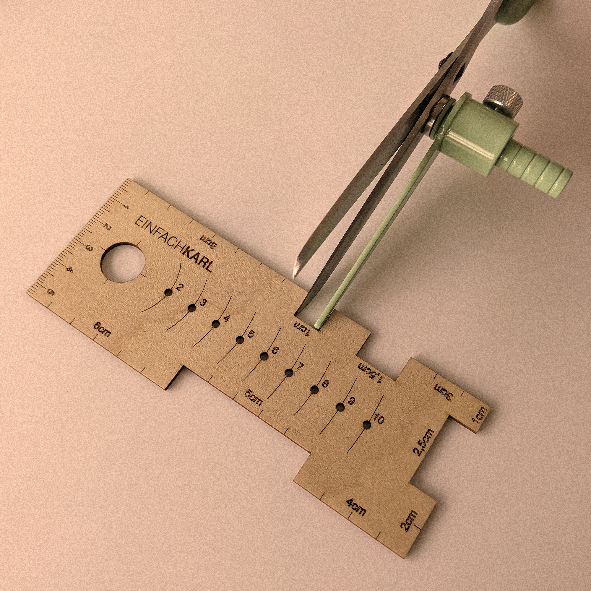 Mit seinem langen Schwert gehört Karl an deine Stoff- oder Papierschere und erleichtert das Zuschneiden deiner Stoffe und Schnittmuster mit einem Abstand von 0,7 bis 6,0 cm. Das Karlchen gehört an deinen Rollschneider und kann dank seiner zwei Flügel in beiden Richtungen einen Abstand von 1,0 - 6,0 cm anzeigen. Beide Zuschneidehilfen werden mithilfe eines starken Neodym-Magneten an dem Werkzeug deiner Wahl befestigt.